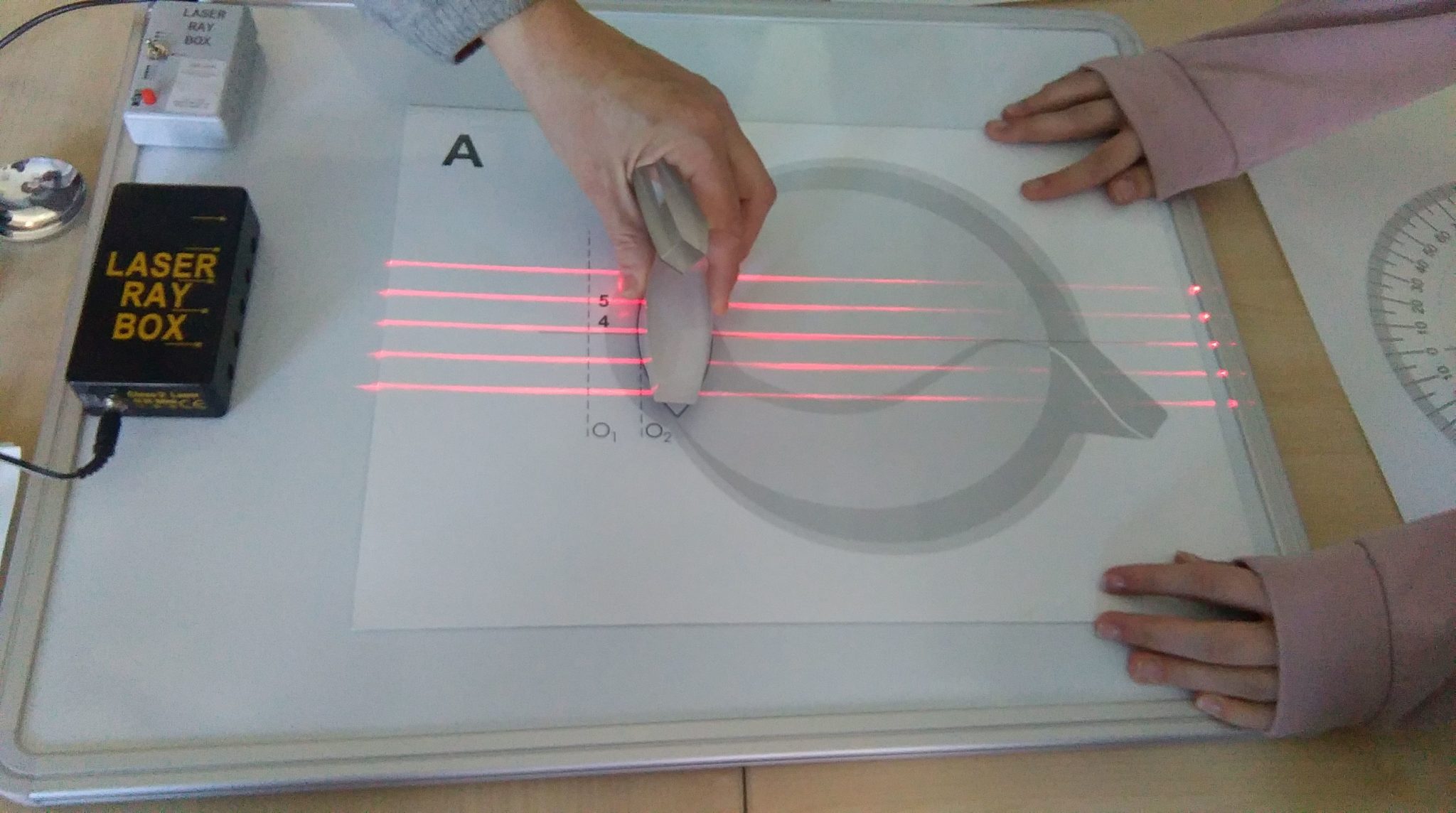 W poniedziałek 1 kwietnia, na jednym z oddziałów szpitalnych odbyły się warsztaty z optyki. Naszym gościem była dr I.Iwaszkiewicz-Kostka z UAM w Poznaniu. Zaczęliśmy od zabawy w „zwierciadlane odbicie”- odnalezienie swojej prawej i lewej strony ciała w „zwierciadle” okazało się niełatwe. Dzięki zestawowi kvanta , uczniowie dokonywali pomiaru kąta odbicia promienia laserowego na granicy dwóch ośrodków, badali kąt załamania, przy przejściu z jednego ośrodka do drugiego o innej gęstości, przejście światła laserowego przez pryzmat. Młodzież miała też okazję poznać budowę oka krótkowidza i dalekowidza, dobierać soczewki odpowiednio skupiające i rozpraszające oraz obserwować bieg promieni lasera po dokonanej korekcie soczewki oka. Naukowa lekcja pobudziła młode umysły do szukania nowych rozwiązań i dała wszystkim wiele satysfakcji.