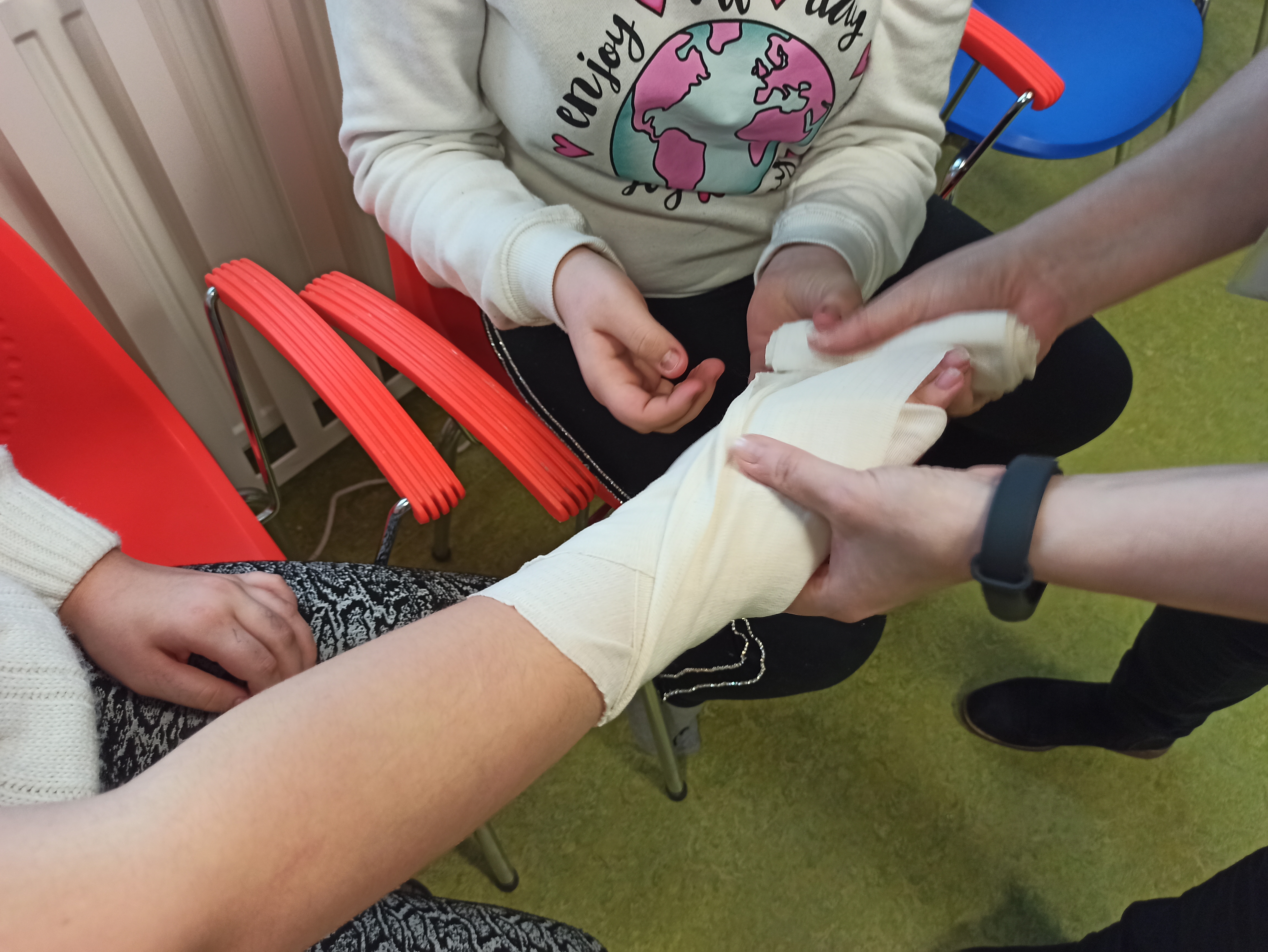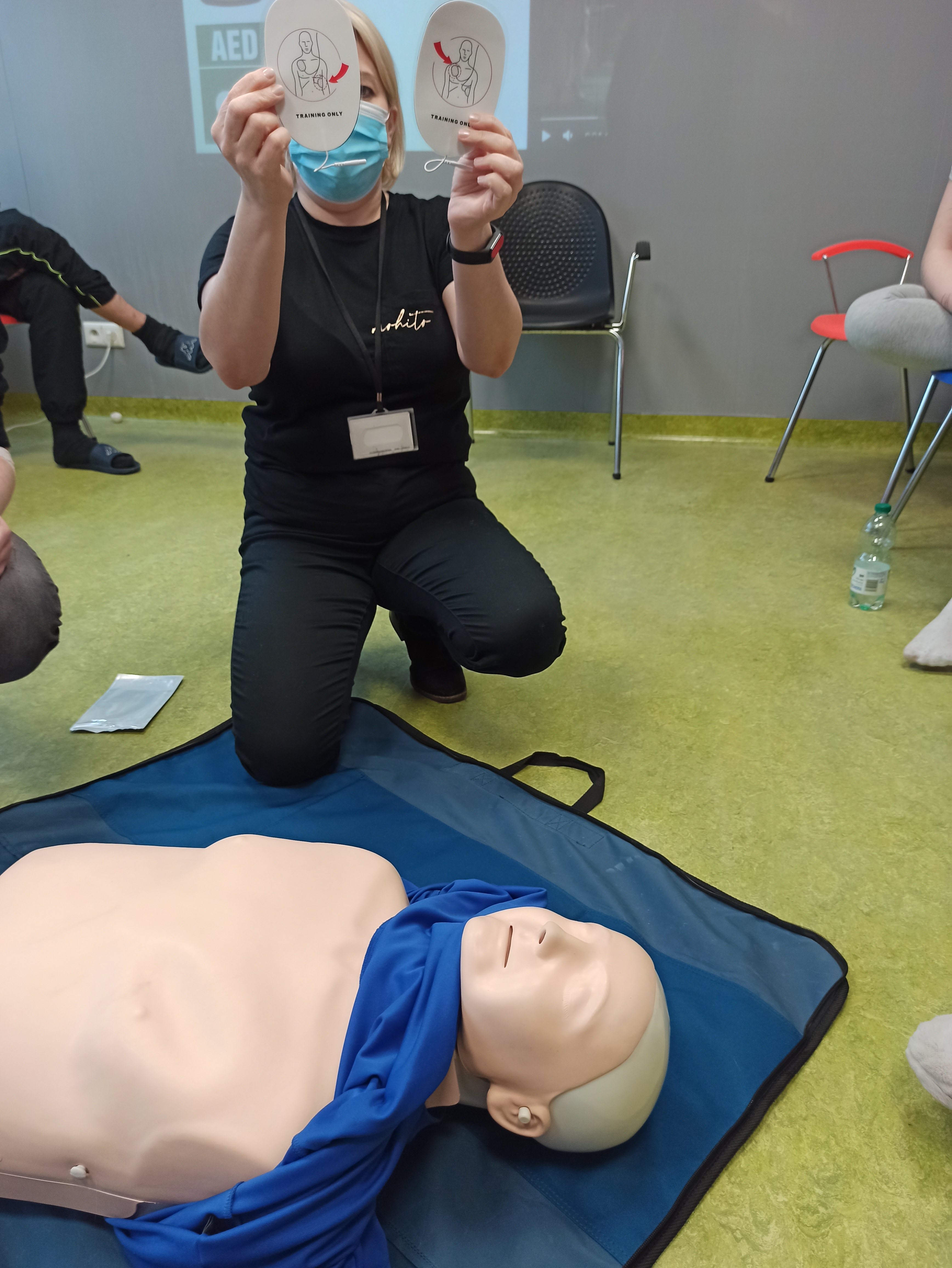 Poza ciekawą wiedzą teoretyczną, każdy miał możliwość praktycznego ćwiczenia procedur zachowania się w sytuacji wypadku, RKO, korzystania z defibrylatora oraz bandażowania. TAKIE KOMPETENCJE SĄ BARDZO WARTOŚCIOWE.