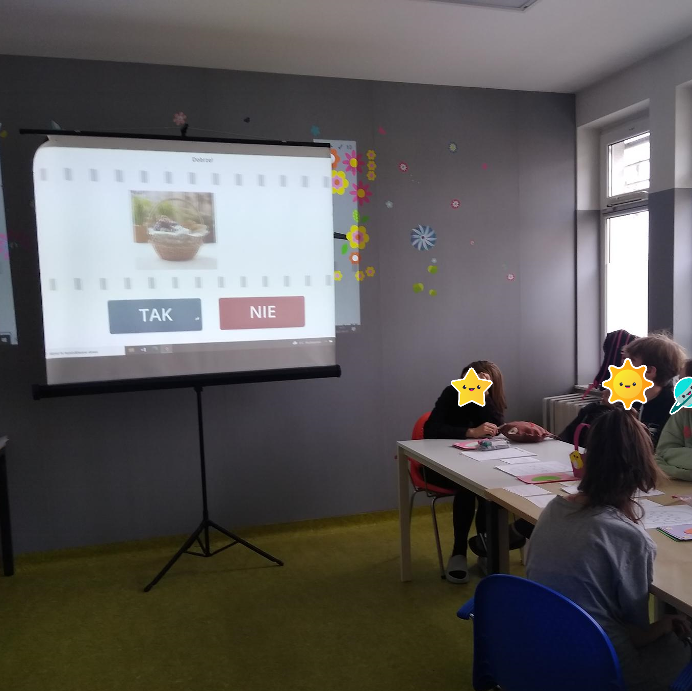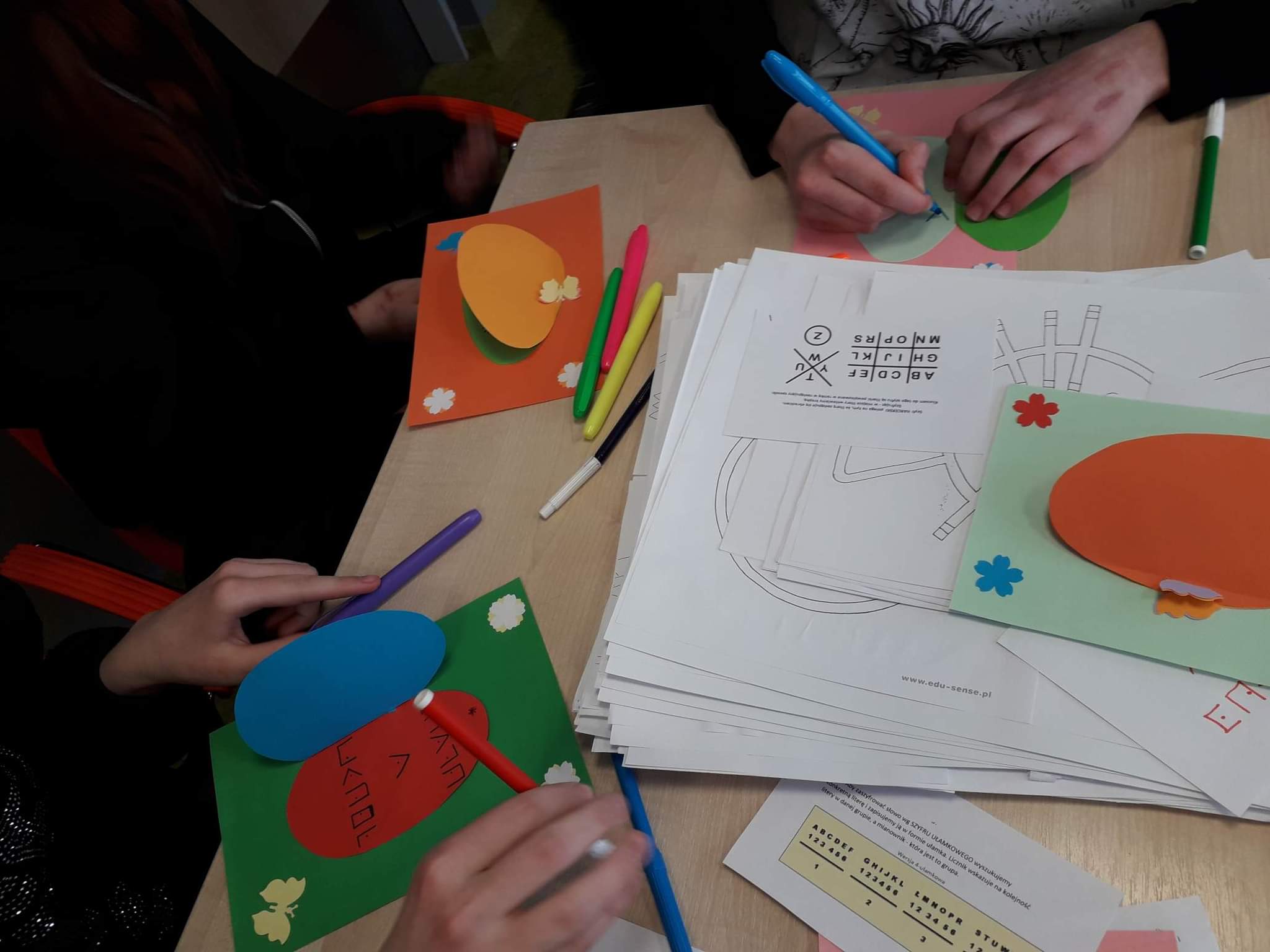 Uczniowie obejrzeli filmik i rozwiązali interaktywny quiz o tradycjach świątecznych. Zakodowali życzenia, udekorowali piękne kartki. Zaprojektowali ozobotowe trasy w kształcie symboli wielkanocnych (pisanki, zajączki, koszyczki), na których mały robocik świecił różnokolorowymi światełkami.