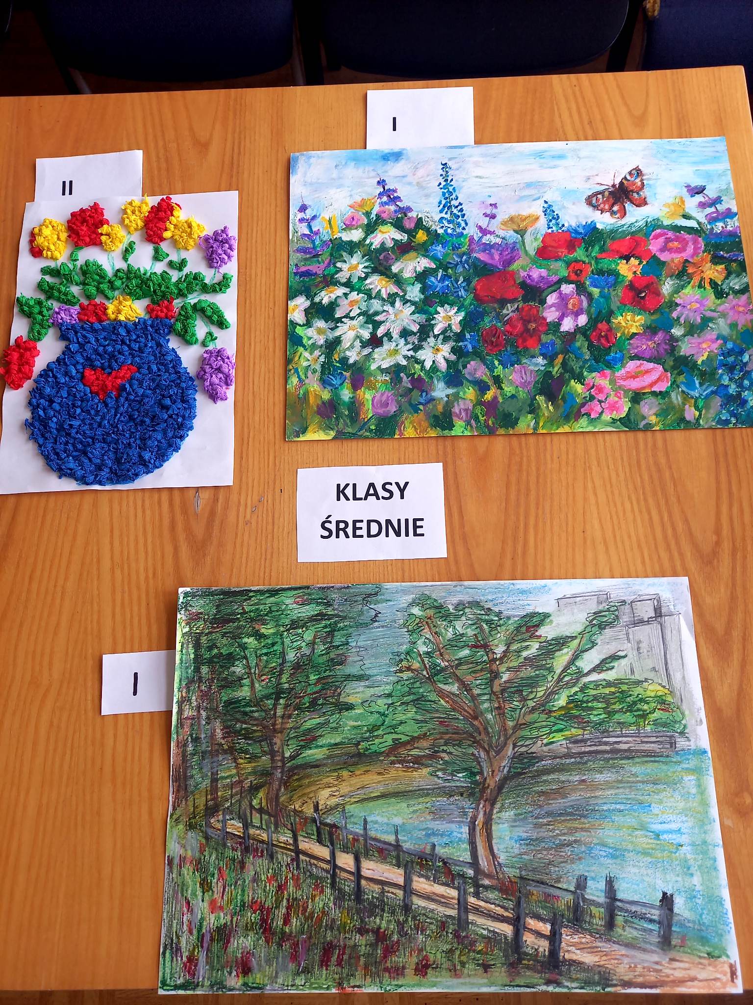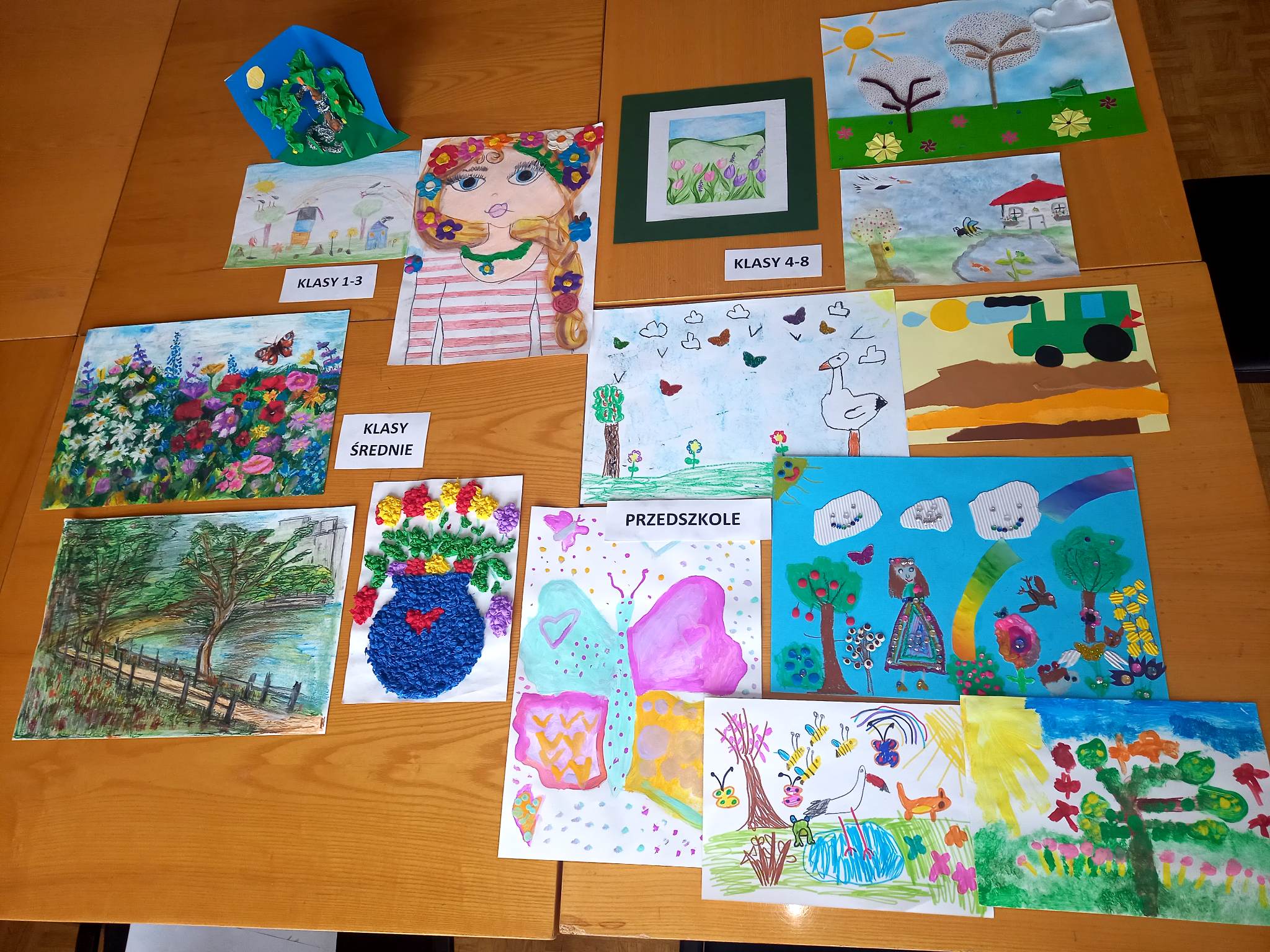 Na powitanie wiosny odbył się w naszej szkole konkurs plastyczny pod hasłem „Wiosna budzi kolory”.