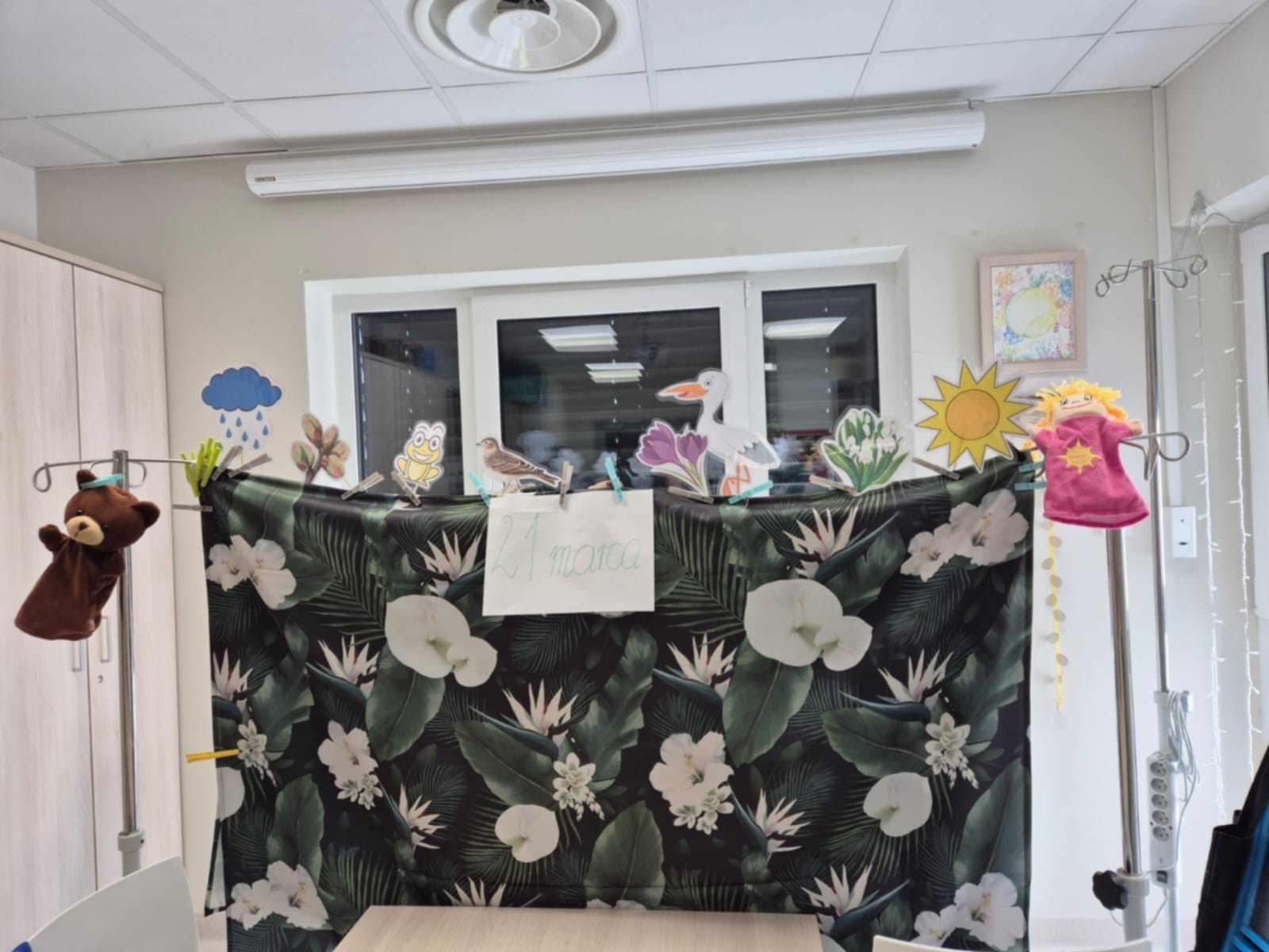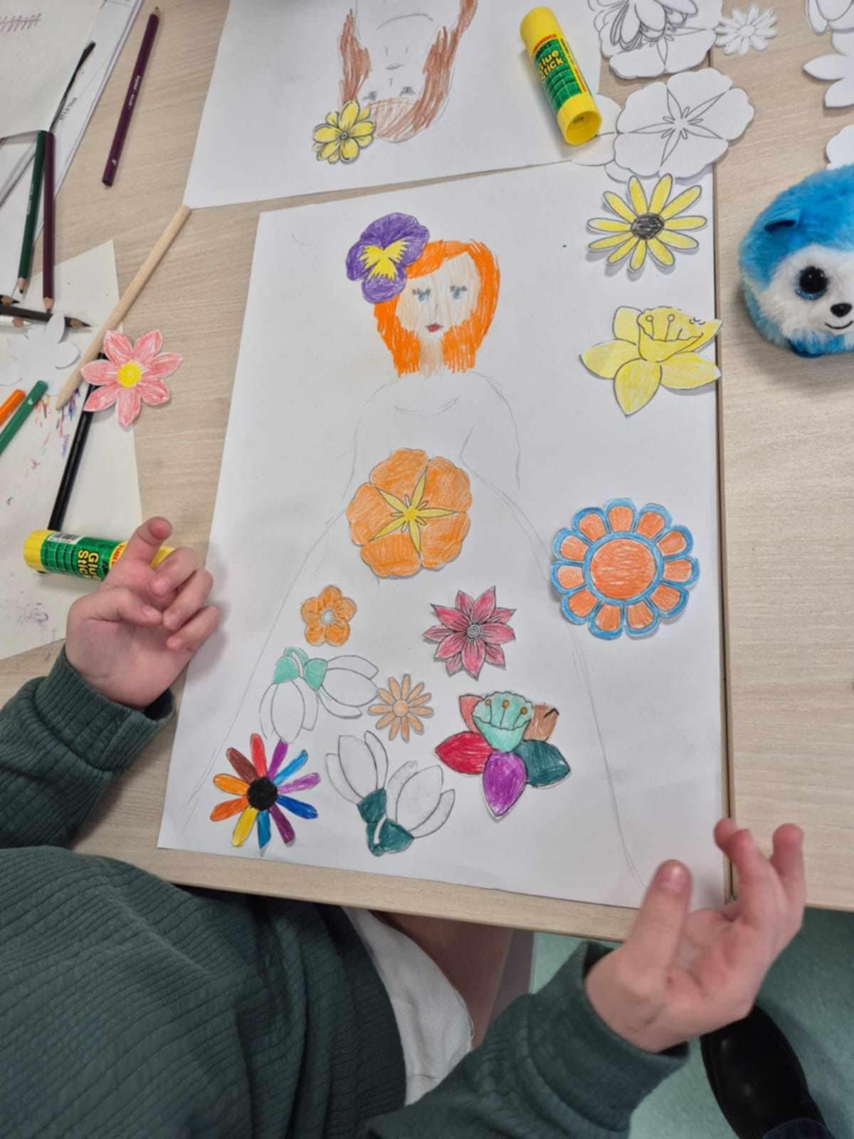 Uczniowie z zaciekawieniem oraz uśmiechem na twarzy obejrzeli występ. Następnie podczas pogadanki dzieci samodzielnie opowiadały o pierwszych symptomach wiosny. W trakcie zajęć podopieczni rozwiązywali zadania, krzyżówki oraz zagadki związane z wiosną. Na zakończenie każde dziecko wykonało Panią Wiosnę według własnego pomysłu.