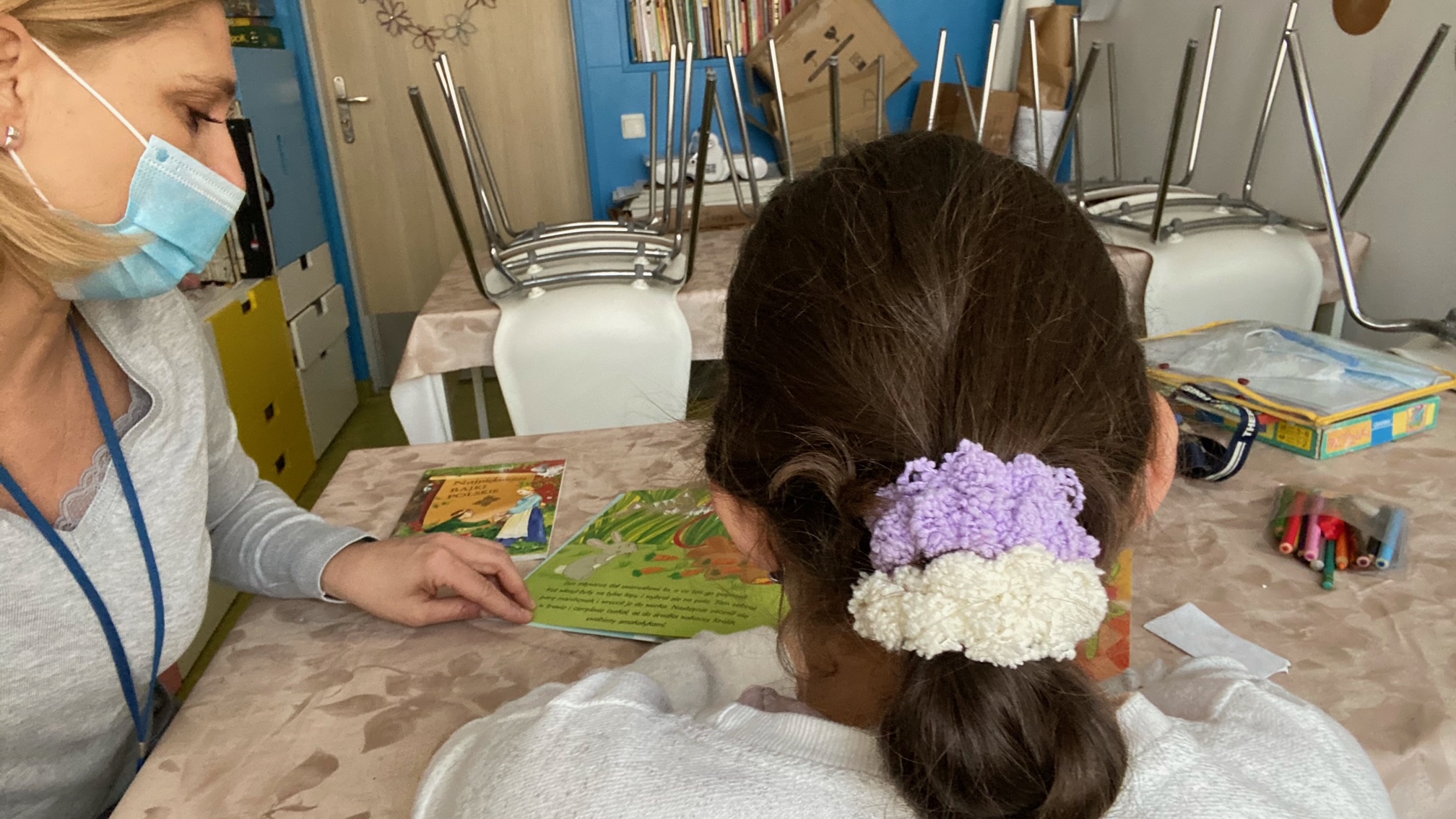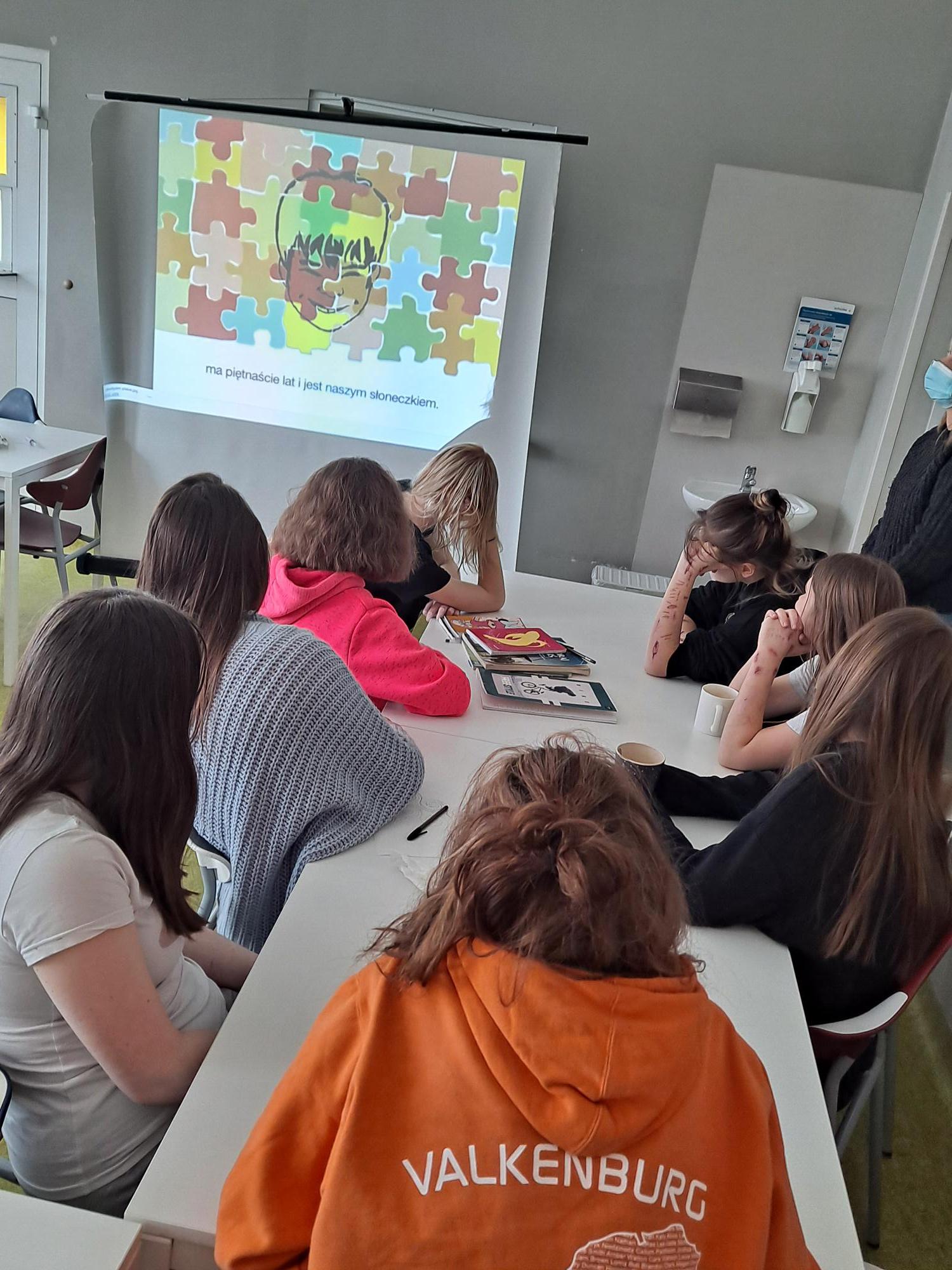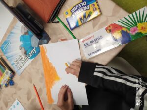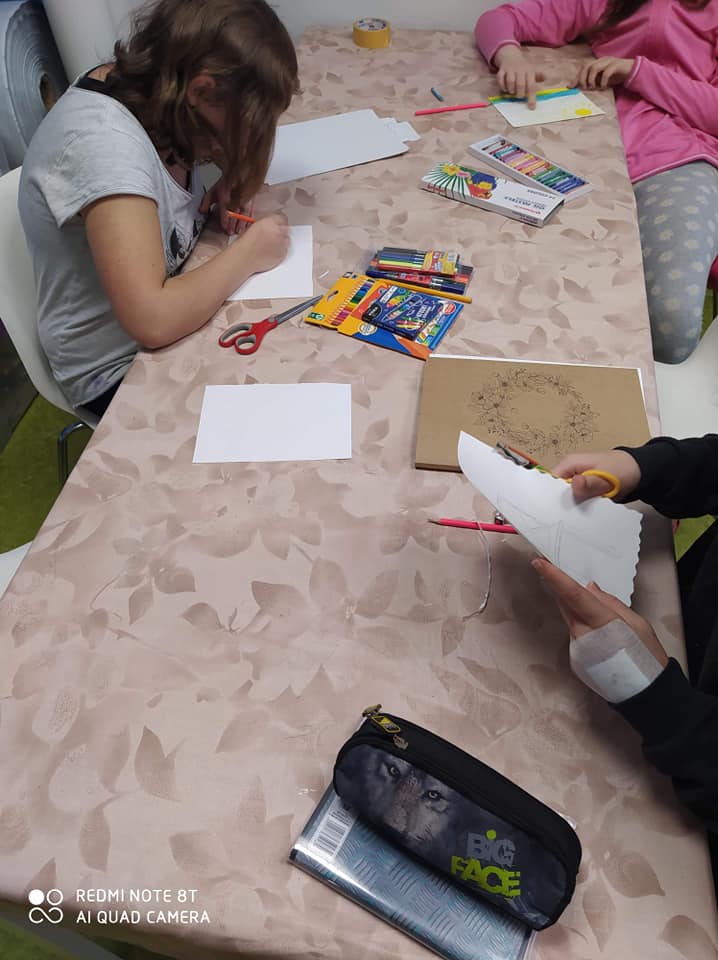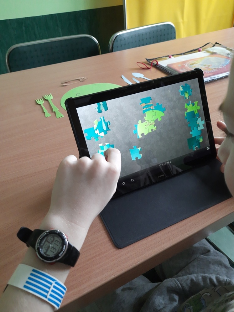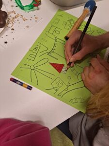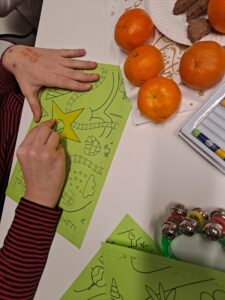 Wspólne śpiewanie i granie kolęd z uczniami na jednym z naszych oddziałów. Rozwiązywanie quizu oraz tworzenie kolorowej choinki z elementów kolorowanki w puzzlach.