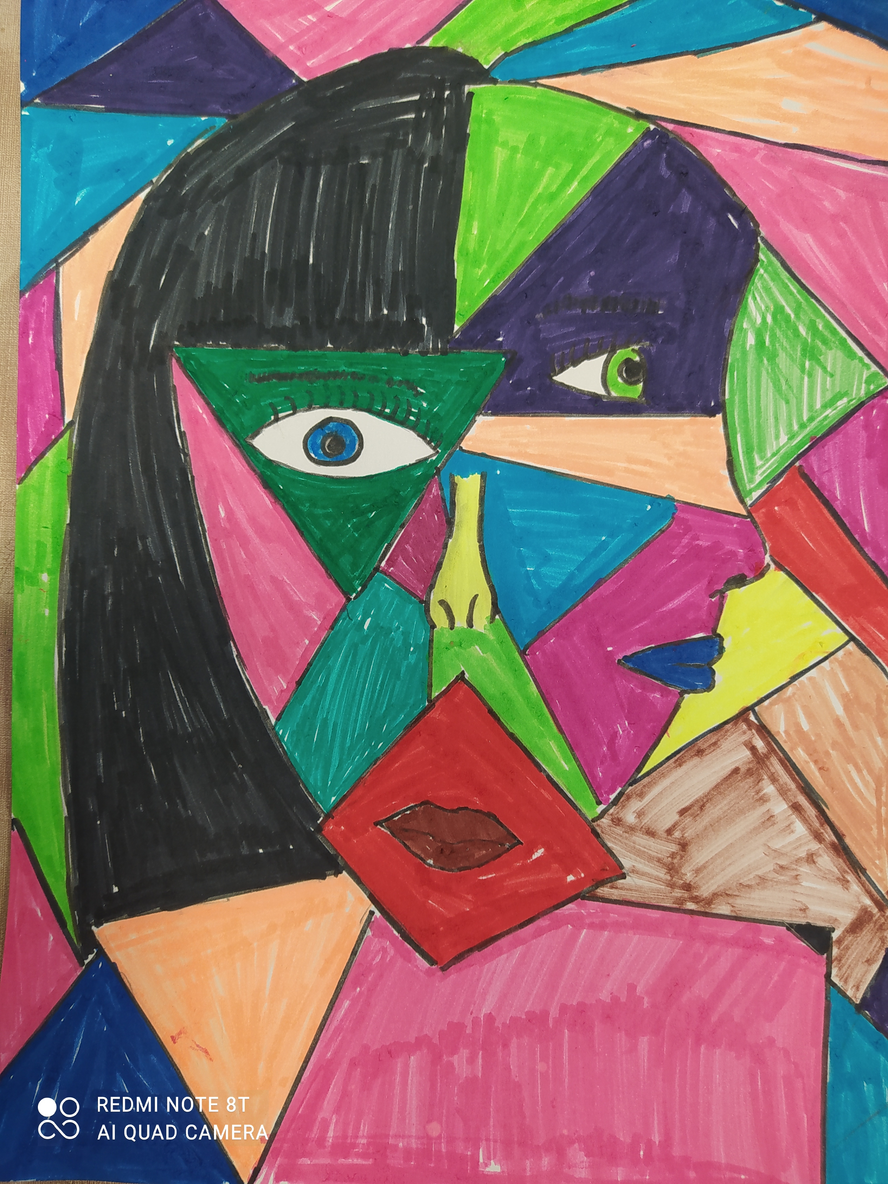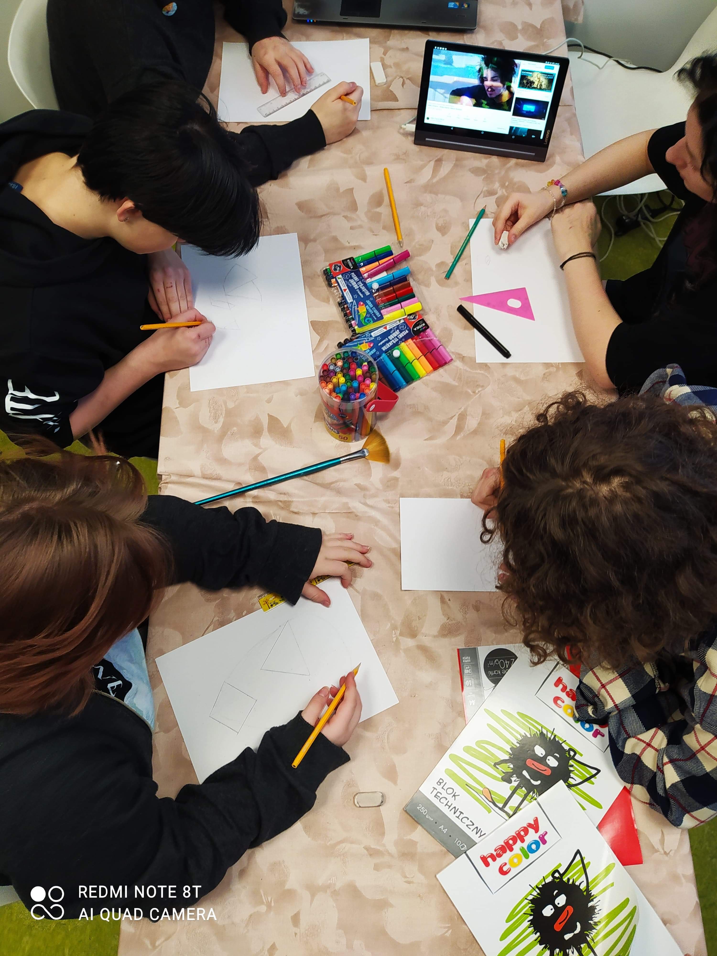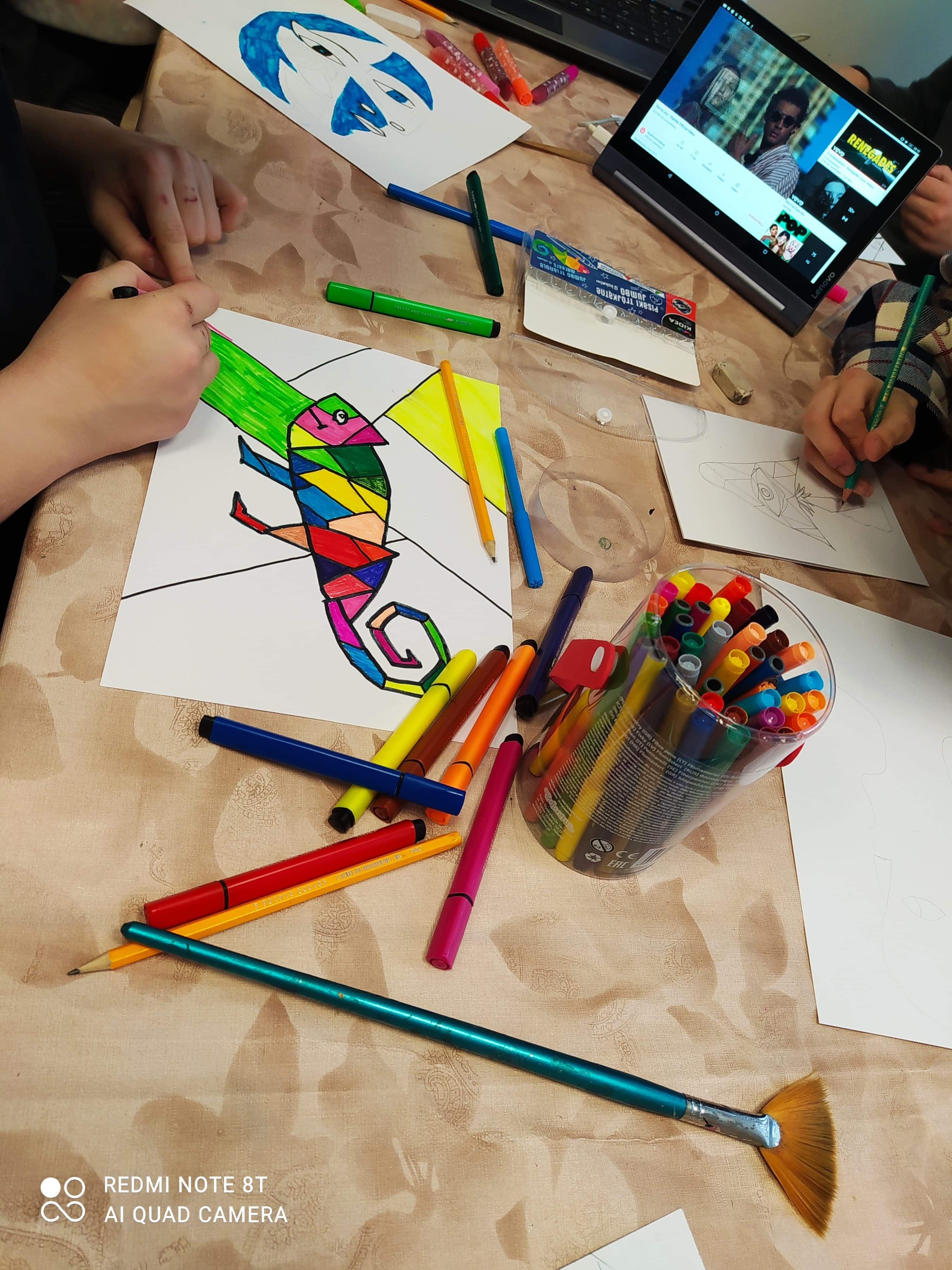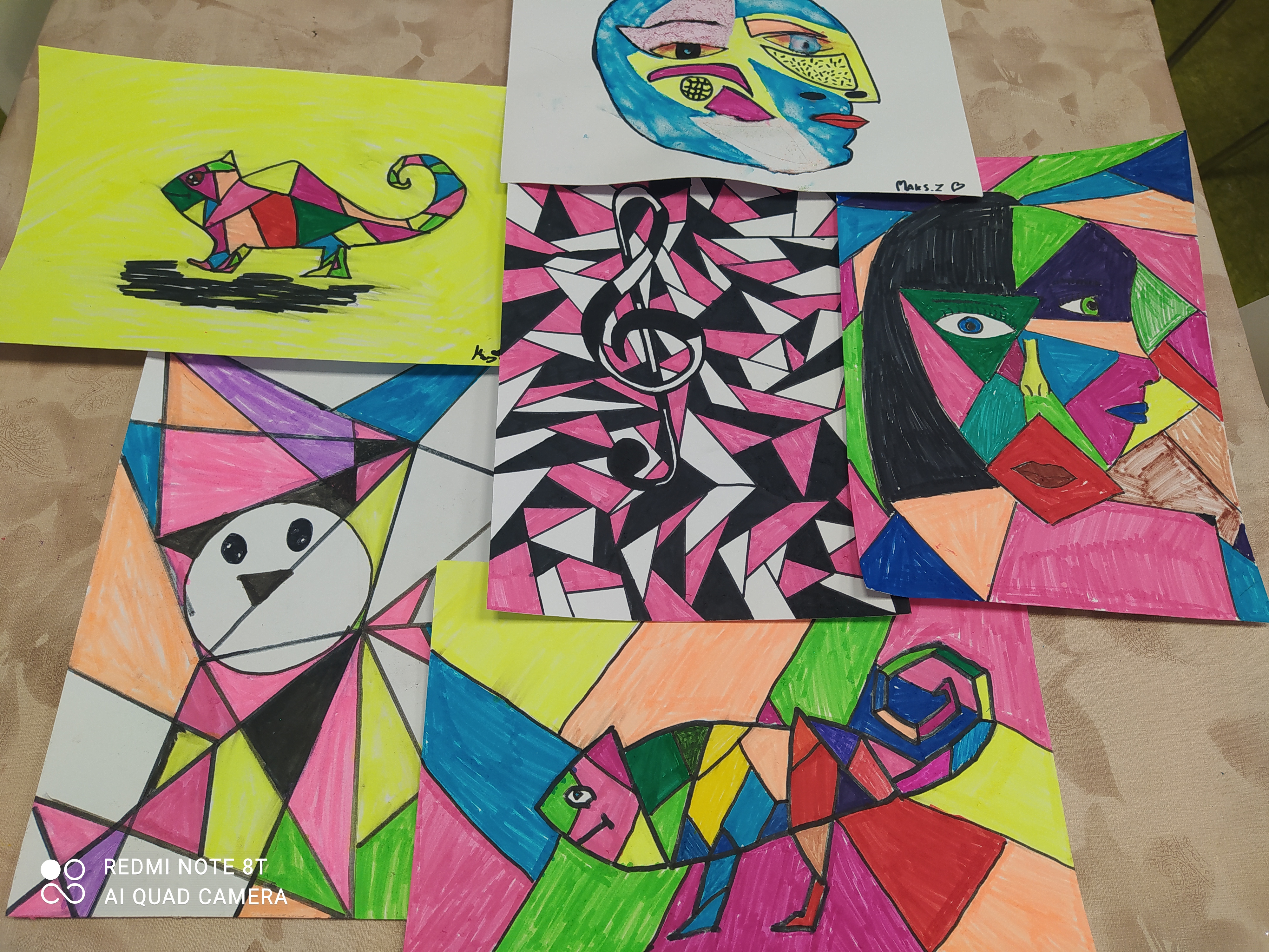 Uczniowie zapoznali się z dziełami kubistycznymi a potem sami tworzyliśmy dzieła kubistyczne.