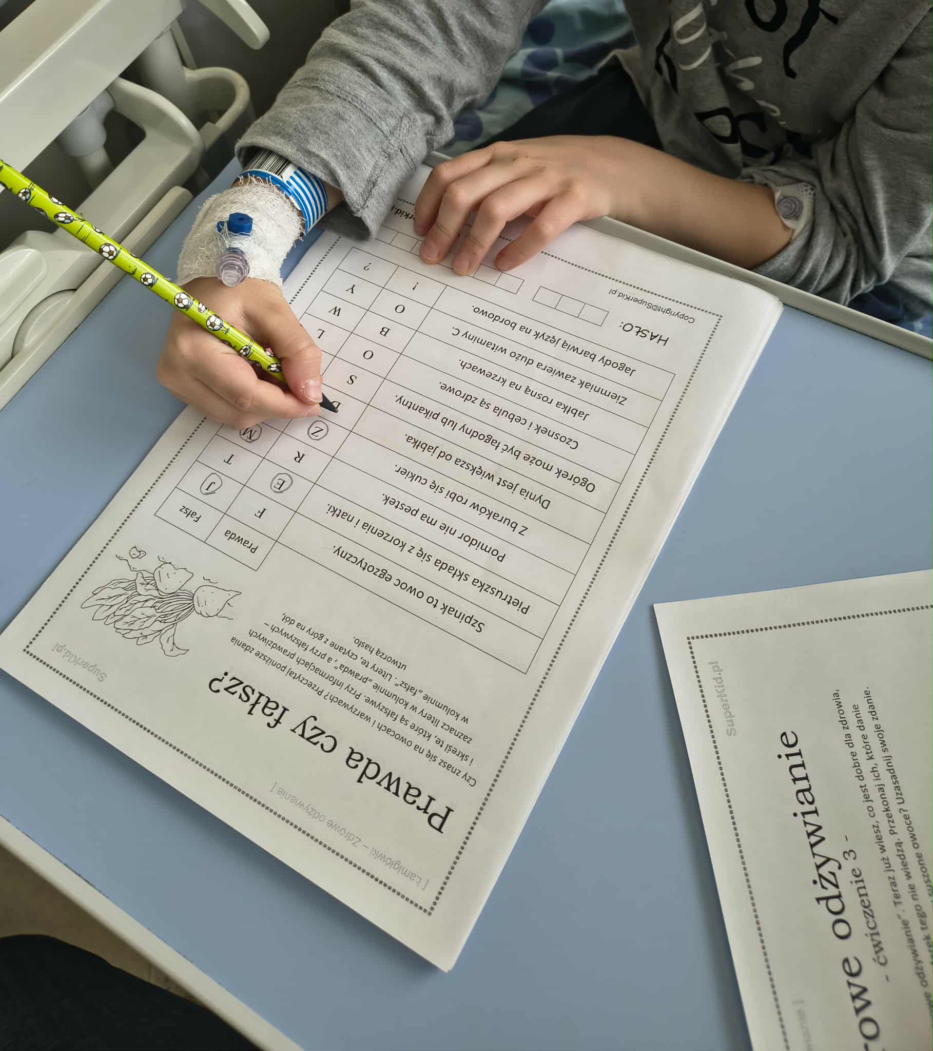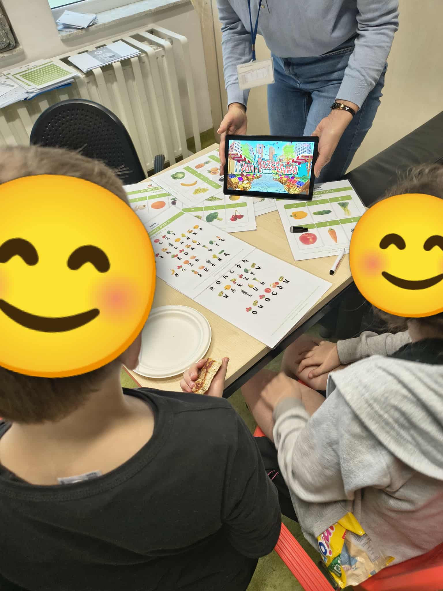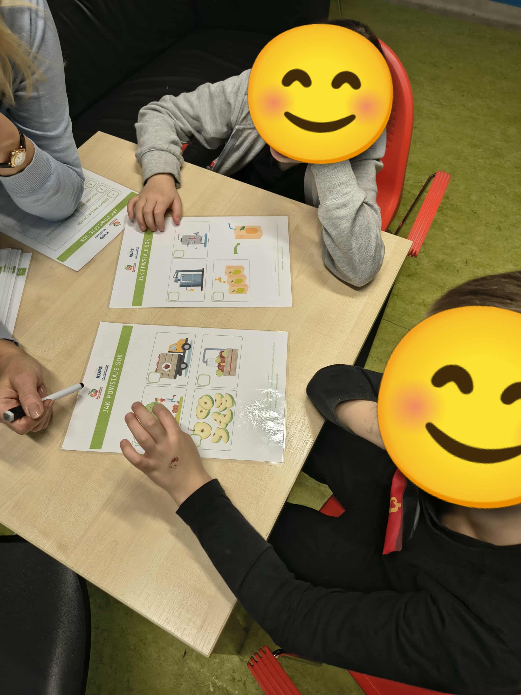 Dzieci poznały piramidę zdrowego żywienia, która pokazuje, jakie produkty powinniśmy jeść najczęściej, a jakie rzadziej. Rozwiązywaliśmy rebusy i karty pracy o zdrowym jedzeniu. Uczniowie rozmawiali o tym, co szkodzi zdrowiu – np. zbyt dużo słodyczy, chipsów, napojów gazowanych i brak ruchu. Na koniec przypomnieliśmy, że aby być zdrowym, trzeba: jeść różnorodne posiłki, pić dużo wody, ruszać się każdego dnia, dobrze się wysypiać i dbać o odpoczynek.