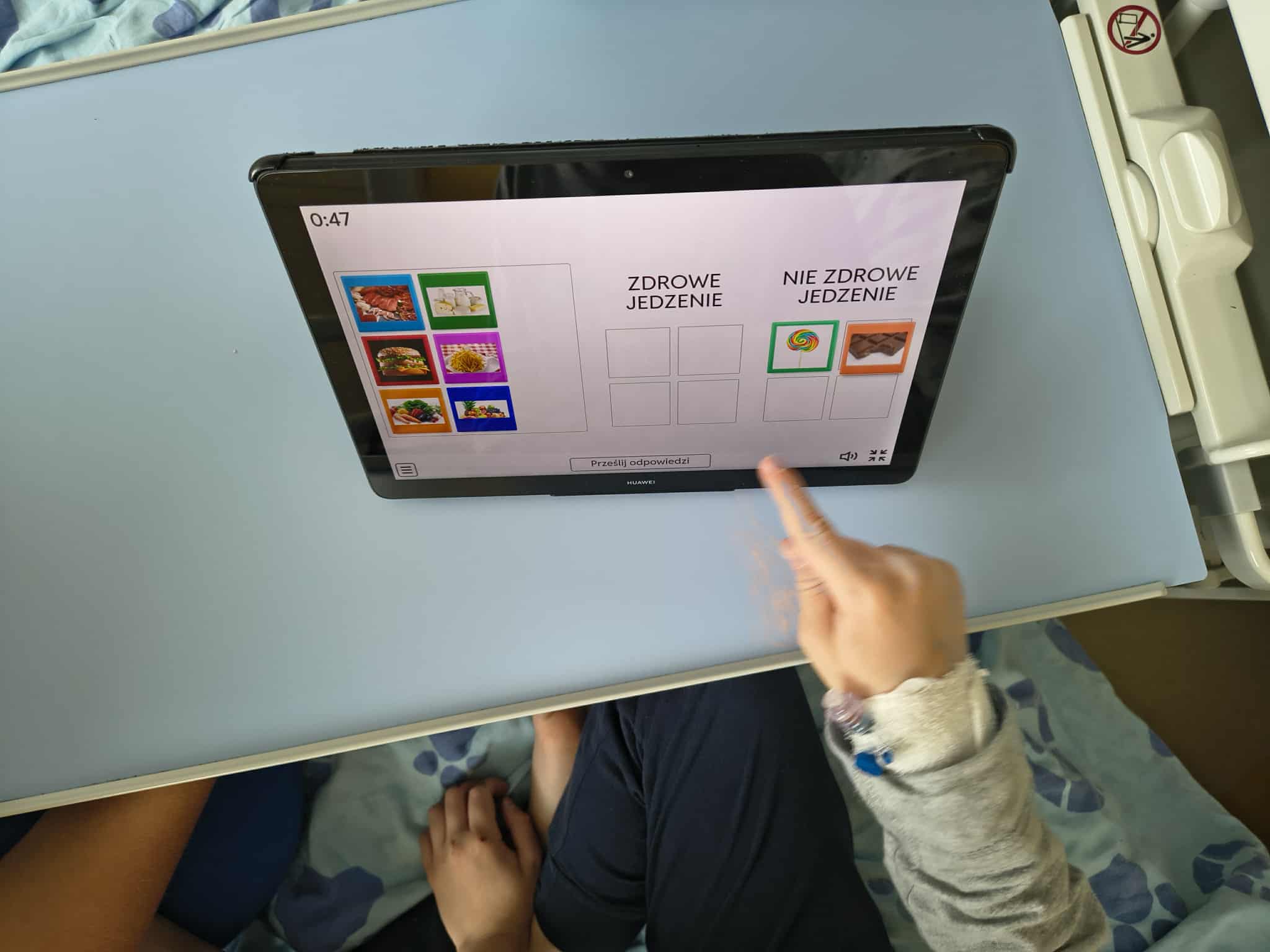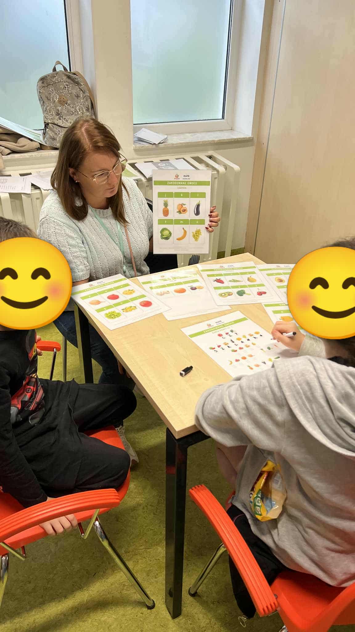 Uczniowie edukacji wczesnoszkolnej rozmawiali na lekcji o zdrowym odżywianiu.